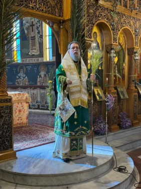 Προ της Απολύσεως, ο Μητροπολίτης κ. Γαβριήλ αναφέρθηκε στην ενθουσιώδη υποδοχή που επεφύλαξε ο Ισραηλιτικός λαός στον Κύριο μας Ιησού Χριστό στην πόλη των Ιεροσολύμων, ύστερα από το θαύμα της Αναστάσεως του Λαζάρου, η οποία σηματοδοτεί την αρχή της Αγίας και Μεγάλης Εβδομάδος, καθώς οδεύουμε προς το εκούσιο Πάθος, τη Σταύρωση και τη λαμπροφόρο Ανάσταση του Κυρίου.