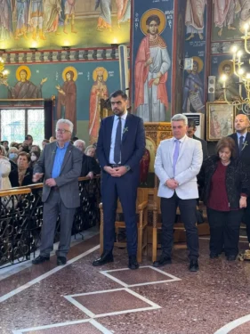 Στην Θεία Λειτουργία παρέστησαν ο Υφυπουργός παρά τω Πρωθυπουργώ και Κυβερνητικός Εκπρόσωπος κ. Παύλος Μαρινάκης, ο Δήμαρχος Ν. Ιωνίας κ. Παναγιώτης Μανούρης, αντιδήμαρχοι, μέλη του Δημοτικού Συμβουλίου της Ν. Ιωνίας, ο πρόεδρος της Διοικούσης Επιτροπής του ΚΕ.ΜΙ.ΠΟ. του Δήμου Ν. Ιωνίας κ. Λουκάς Χριστοδούλου, πρόεδροι και εκπρόσωποι τοπικών προσφυγικών σωματείων και πλήθος πιστών.