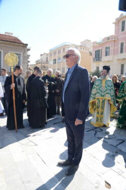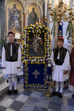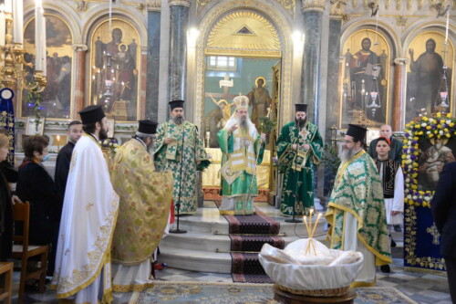 Μετά τήν Θεία Λειτουργία, ἐλιτανεύθη ἡ ἱερά Εἰκών τοῦ Ἁγίου Ἐθνοϊεορομάρτυρος Γρηγορίου τοῦ Ε’, ἀνεπέμφθη δέησις, ἐνώπιον τῆς προτομῆς του καί κατετέθησαν στέφανοι.