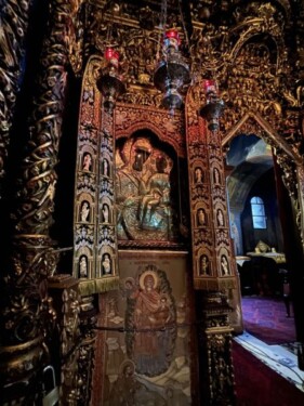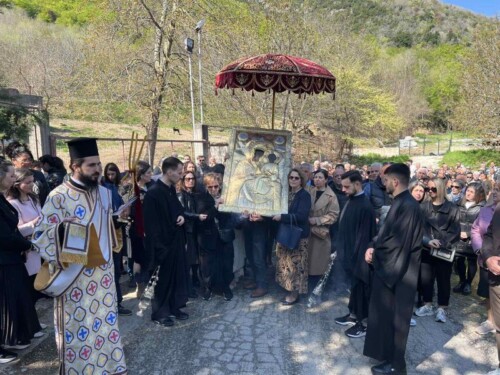 Ακολούθως, έγινε η πασχαλιάτικη λιτανεία της εφεστίου αχειροποιήτου Ιεράς Εικόνος της Παναγίας της Εικοσιφοίνισσας, στη μνήμη των 172 Οσιομαρτύρων και των τριάντα προσκυνητών που σφαγιάσθηκαν από τους Οθωμανούς, τον Αύγουστο του 1507.