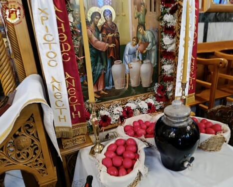 Ἐπί τῇ εὐσήμῳ ταύτῃ πασχαλίῳ ἡμέρᾳ, χαιρόμεθα ὅτι Χριστός Ἀνέστη καί θάνατος ἐθανατώθη. Καί πάλιν χαιρόμεθα ,ὅτι ὁ καρπός τοῦ δένδρου τῆς ἐν Κανᾷ τῆς Γαλιλαίας φανερωθείσης δόξης τοῦ Θεοῦ διατηρεῖται λίαν καλῶς , κατά τόν Κυριακόν λόγον: «Ποιήσατε τό δένδρον καλόν καί τόν καρπόν αὐτοῦ καλόν· ἐκ γάρ τοῦ καρποῦ τό δένδρον γινώσκεται», (Ματθ. 12,33).