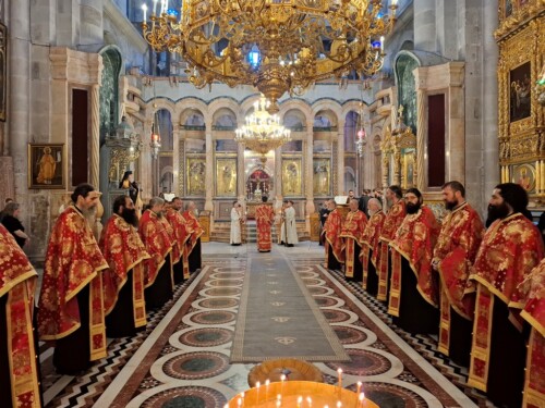 Α. Εἰς τόν Πανίερον Ναόν τῆς Ἀναστάσεως, ὡς «Παρρησία», ἤτοι διά πανηγυρικοῦ Ἑσπερινοῦ ἀφ’ ἑσπέρας μετ’ εἰσόδου καί προσκυνήσεως εἰς τήν Ἁγίαν Ἀποκαθήλωσιν καί τόν Πανάγιον Τάφον, θυμιάματος καί Μεγάλης Εἰσόδου καί Ἀρτοκλασίας εἰς τό Καθολικόν καί διά θείας Λειτουργίας τήν πρωΐαν εἰς τόν Πανάγιον καί Ζωοδόχον Τάφον, προεξάρχοντος τοῦ Πατριαρχικοῦ Ἐπιτρόπου Σεβασμιωτάτου Μητροπολίτου Καπιτωλιάδος κ. Ἡσυχίου καί συλλειτουργούντων αὐτῷ τοῦ Σεβασμιωτάτου Ἀρχιεπισκόπου Γεράσων κ. Θεοφάνους καί τοῦ Σεβασμιωτάτου Ἀρχιεπισκόπου Σεβαστείας κ. Θεοδοσίου, Ἁγιοταφιτῶν Ἱερομονάχων, ὧν πρῶτος ὁ Τελετάρχης Ἀρχιμανδρίτης π. Βαρθολομαῖος καί ἄλλων, ψάλλοντος τοῦ Ἱεροδιακόνου π. Συμεών μετά τῶν μαθητῶν τῆς Πατριαρχικῆς Σχολῆς Σιών καί μετεχόντων μελῶν τῆς Ἑλληνικῆς παροικίας τῶν Ἱεροσολύμων καί εἰσέτι ἐκ τοῦ Πάσχα παρευρισκομένων προσκυνητῶν ἐξ Ἑλλάδος, Κύπρου, Ρωσίας καί Ρουμανίας, παρουσίᾳ τοῦ Προξένου τῆς Ἑλλάδος κ. Πέτρου Ἀναγνωστάρα.