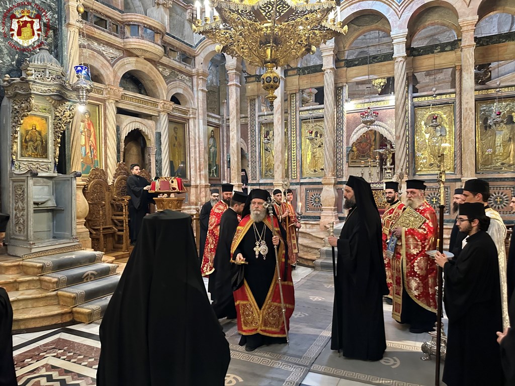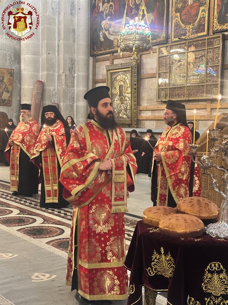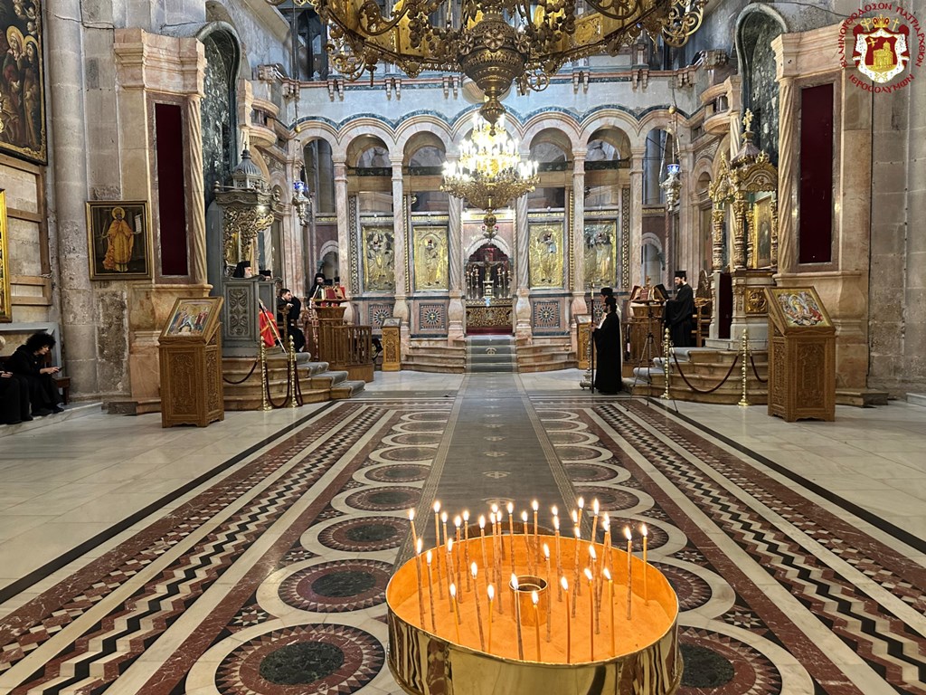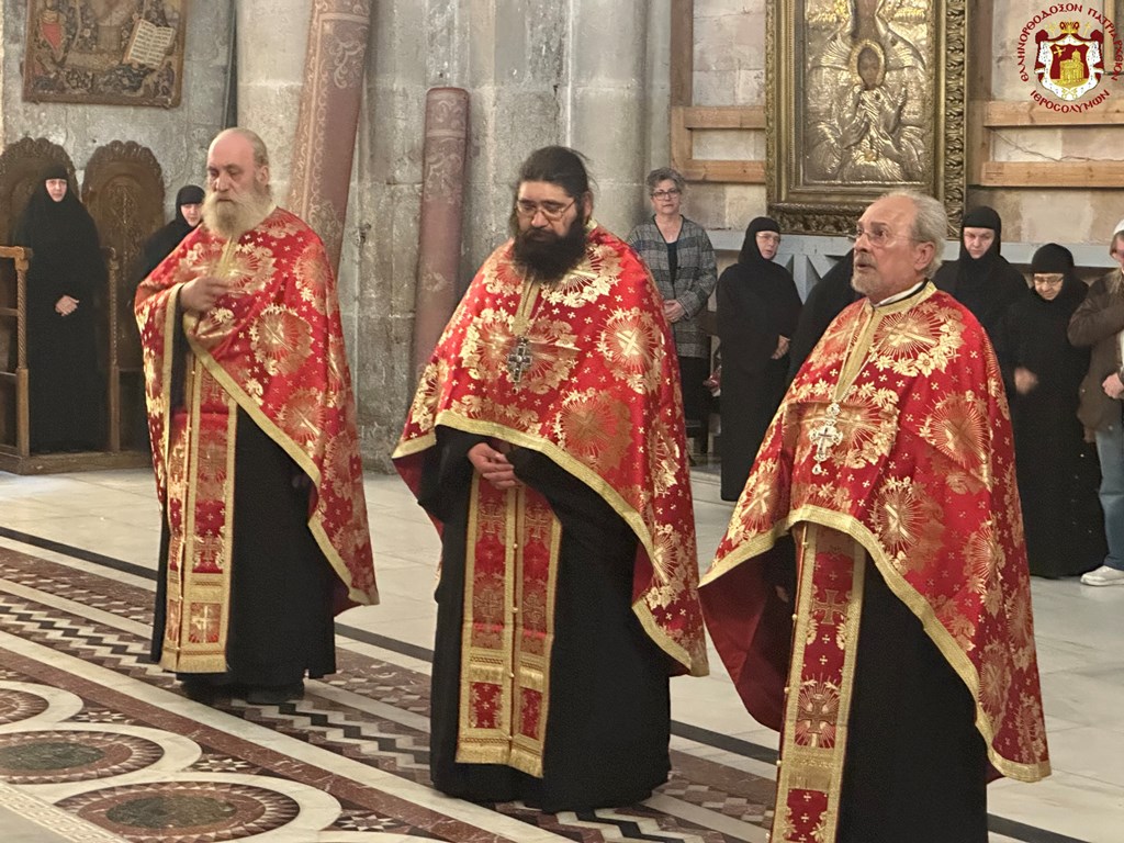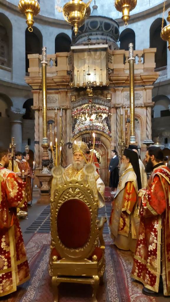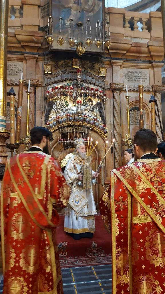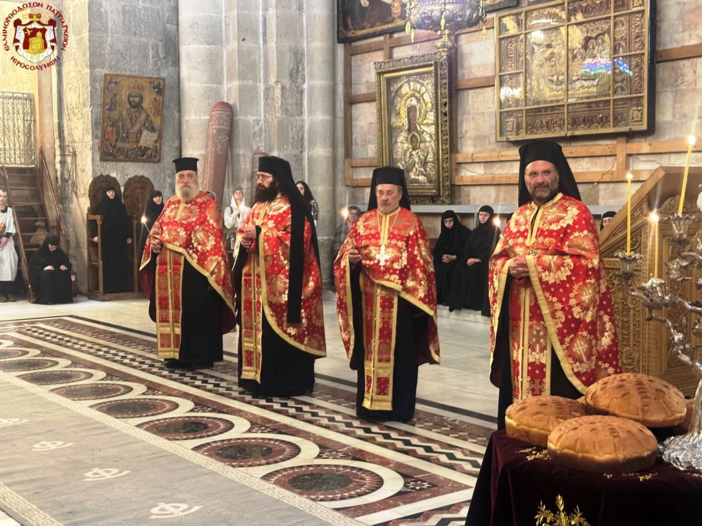Τὴν ἑορτὴν ταύτην ἑώρτασε τὸ Πατριαρχεῖον Ἱεροσολύμων εἰς τόν Ναόν τῆς Ἀναστάσεως ἀφ’ ἑσπέρας δι΄ Ἑσπερινοῦ καὶ τὴν πρωΐαν τῆς Κυριακῆς διά θείας Λειτουργίας, προεξάρχοντος τοῦ Πατριαρχικοῦ Ἐπιτρόπου Σεβασμιωτάτου Μητροπολίτου Καπιτωλιάδος κ. Ἡσυχίου, συλλειτουργούντων αὐτῷ τοῦ Σεβασμιωτάτου Ἀρχιεπισκόπου Λύδδης κ. Δημητρίου καί Ἁγιοταφιτῶν Ἱερομονάχων ὧν πρῶτος ὁ Γέρων Καμαράσης Ἀρχιμανδρίτης π. Νεκτάριος, τῇ τιμητικῇ παρουσίᾳ τῆς Προξένου τῆς Ἑλλάδος κ. Ἄννης Μάντικα καὶ τῇ συμπροσευχῇ πιστῶν τῆς Ἐκκλησίας Ἱεροσολύμων, τῶν προσκυνητῶν μὴ προσερχομένων εἰσέτι,λόγῳ τῶν φημῶν περὶ πολέμου.
