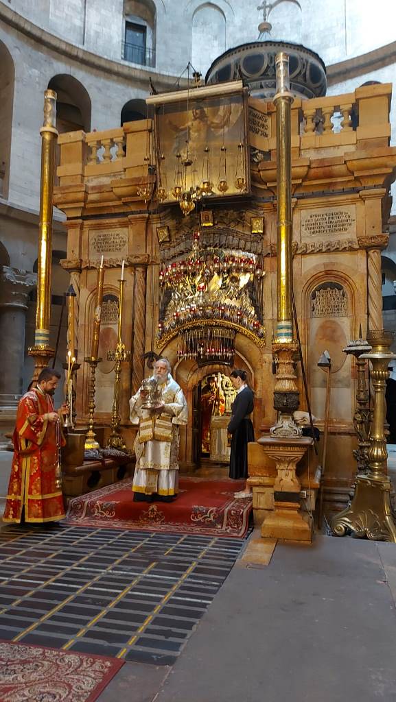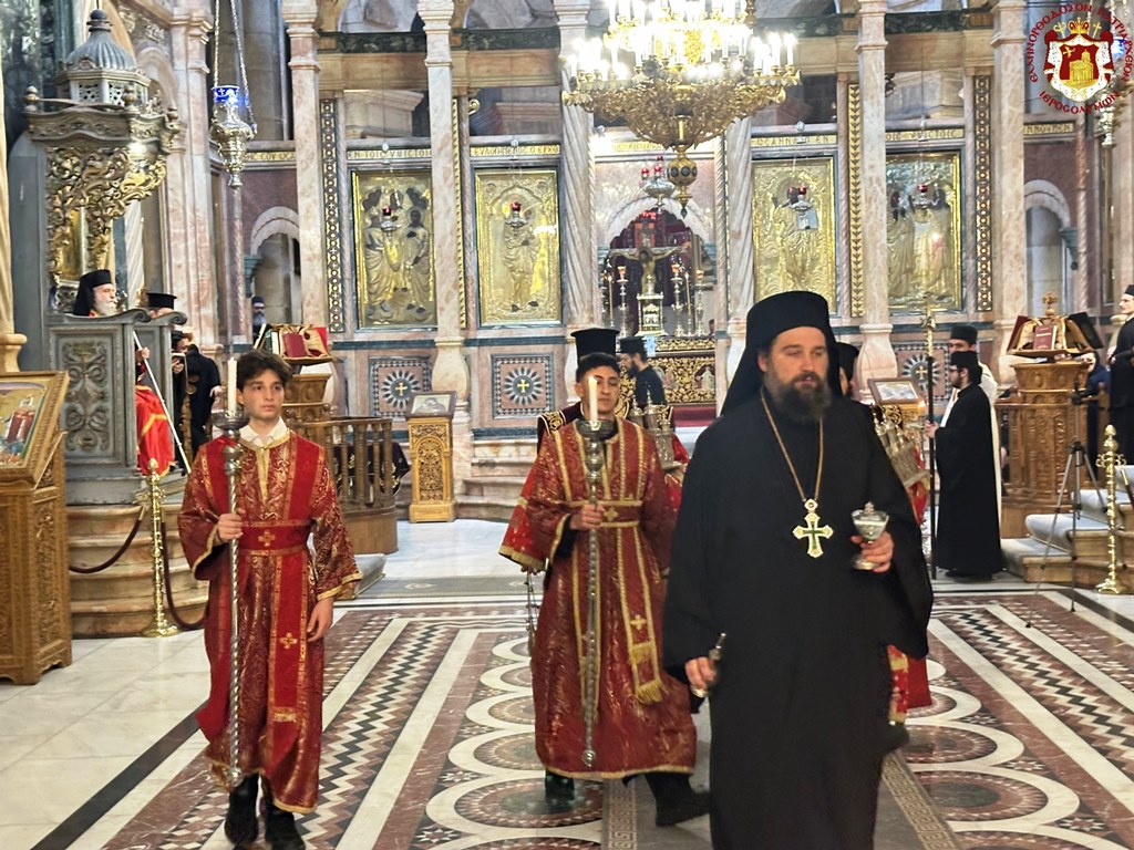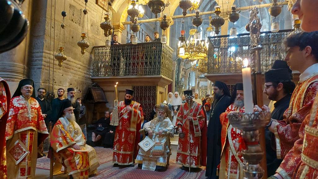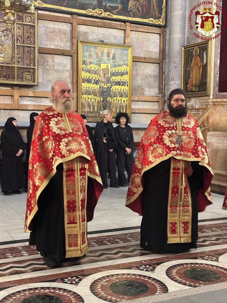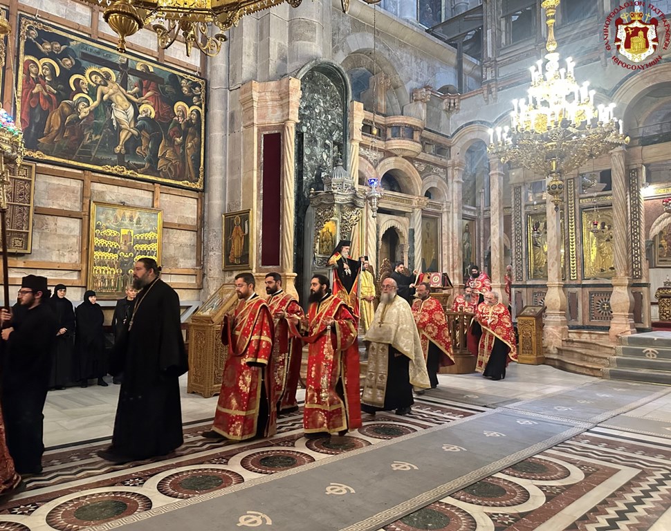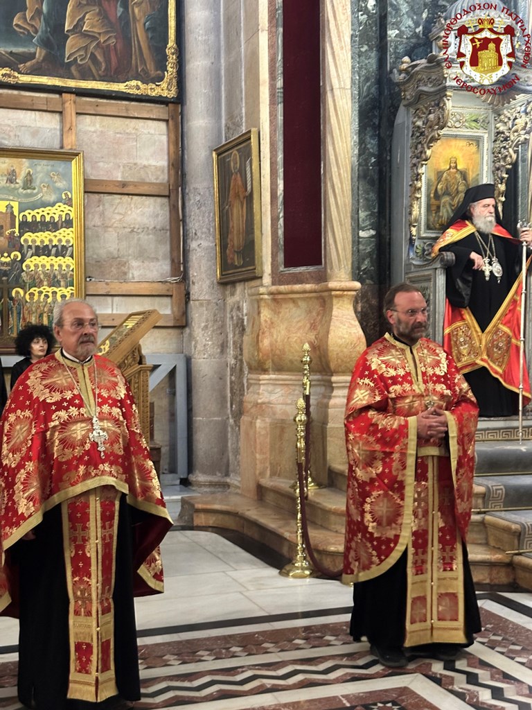Τὴν ἑορτὴν ταύτην ἑώρτασε τὸ Πατριαρχεῖον Ἱεροσολύμων εἰς τόν Ναόν τῆς Ἀναστάσεως ἀφ’ ἑσπέρας δι΄ Ἑσπερινοῦ καὶ τὴν πρωΐαν τῆς Κυριακῆς διά θείας Λειτουργίας, προεξάρχοντος τοῦ Πατριαρχικοῦ Ἐπιτρόπου Σεβασμιωτάτου Μητροπολίτου Καπιτωλιάδος κ. Ἡσυχίου, συλλειτουργούντων αὐτῷ τοῦ Σεβασμιωτάτου Ἀρχιεπισκόπου Λύδδης κ. Δημητρίου καί Ἁγιοταφιτῶν Ἱερομονάχων ὧν πρῶτος ὁ Γέρων Καμαράσης Ἀρχιμανδρίτης π. Νεκτάριος, τῇ τιμητικῇ παρουσίᾳ τῆς Προξένου τῆς Ἑλλάδος κ. Ἄννης Μάντικα καὶ τῇ συμπροσευχῇ πιστῶν τῆς Ἐκκλησίας Ἱεροσολύμων, τῶν προσκυνητῶν μὴ προσερχομένων εἰσέτι,λόγῳ τῶν φημῶν περὶ πολέμου.