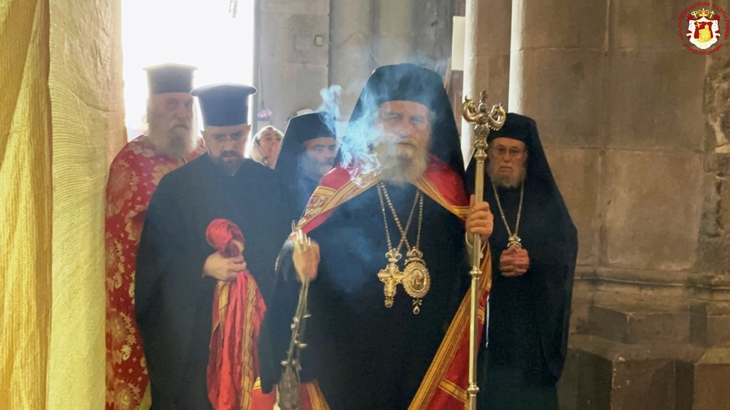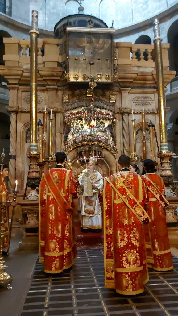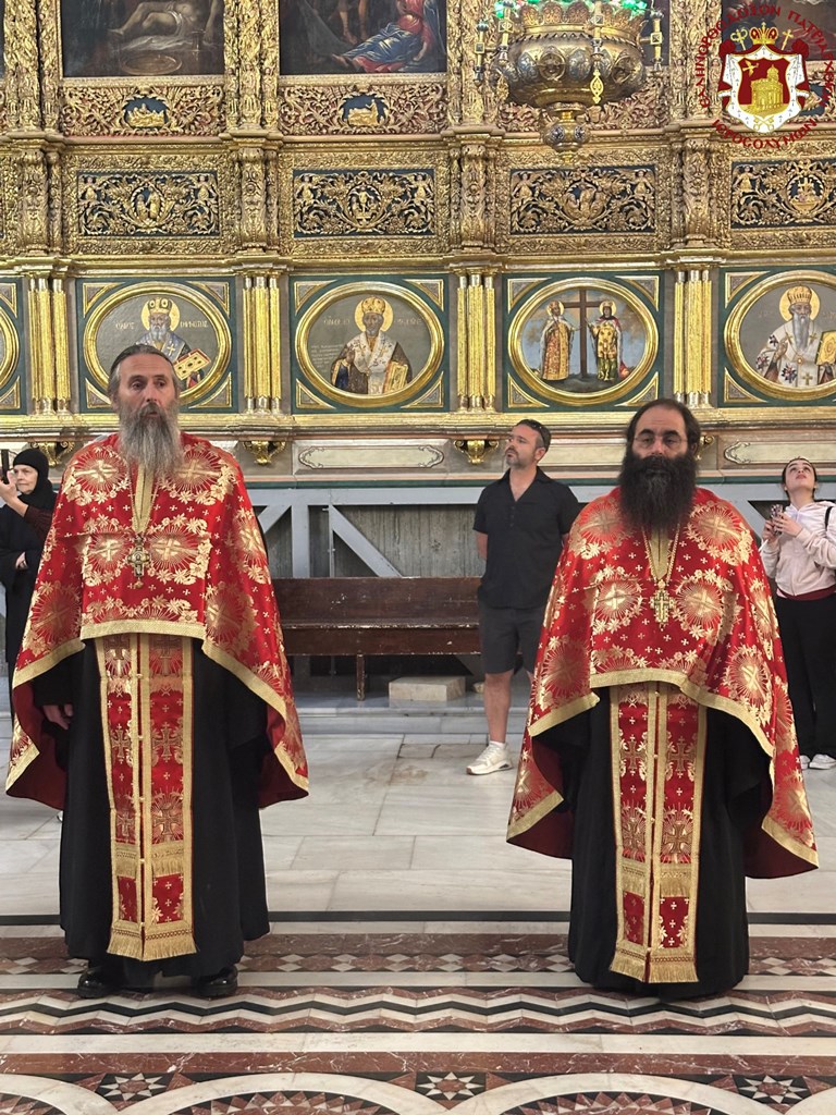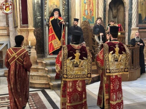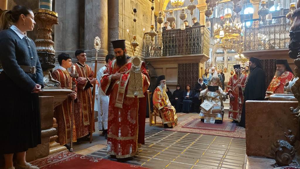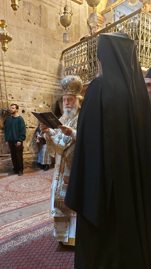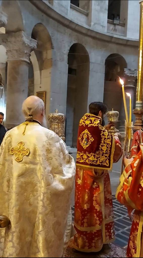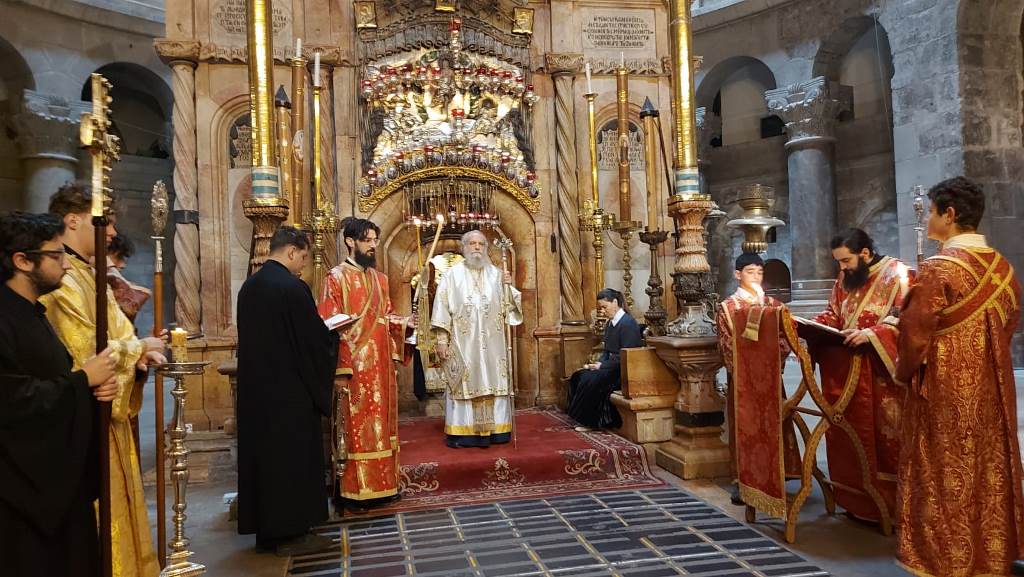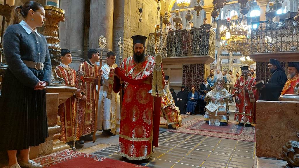 Τὴν ἑορτὴν ταύτην ἑώρτασε τὸ Πατριαρχεῖον Ἱεροσολύμων εἰς τόν Ναόν τῆς Ἀναστάσεως ἀφ’ ἑσπέρας δι΄ Ἑσπερινοῦ καὶ τὴν πρωΐαν τῆς Κυριακῆς διά θείας Λειτουργίας, προεξάρχοντος τοῦ Πατριαρχικοῦ Ἐπιτρόπου Σεβασμιωτάτου Μητροπολίτου Καπιτωλιάδος κ. Ἡσυχίου, συλλειτουργούντων αὐτῷ τοῦ Σεβασμιωτάτου Ἀρχιεπισκόπου Λύδδης κ. Δημητρίου καί Ἁγιοταφιτῶν Ἱερομονάχων ὧν πρῶτος ὁ Γέρων Καμαράσης Ἀρχιμανδρίτης π. Νεκτάριος, τῇ τιμητικῇ παρουσίᾳ τῆς Προξένου τῆς Ἑλλάδος κ. Ἄννης Μάντικα καὶ τῇ συμπροσευχῇ πιστῶν τῆς Ἐκκλησίας Ἱεροσολύμων, τῶν προσκυνητῶν μὴ προσερχομένων εἰσέτι,λόγῳ τῶν φημῶν περὶ πολέμου.