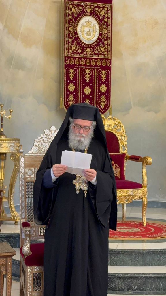 Ὁ Αναστάς ἐκ νεκρῶν Κύριος ὁ Θεός, διὰ πρεσβειῶν τοῦ Ἁγίου ἀποστόλου Θωμᾶ χαρίζοι τῷ Μακαριωτάτῳ κ.κ. Θεοφίλῳ ὑγιείαν,  μακροημέρευσιν ἐπίσης καὶ εἰς ὅλην τὴν Ἁγιοταφιτικήν Ἀδελφότητα ,εὐχόμενοι  ὅπως φέρῃ τὴν πολυπόθητον εἰρήνην εἰς ὅλον τὸν κόσμον καὶ ἰδιαιτέρως εἰς τοὺς Ἁγίους Τόπους, Ἀμήν».