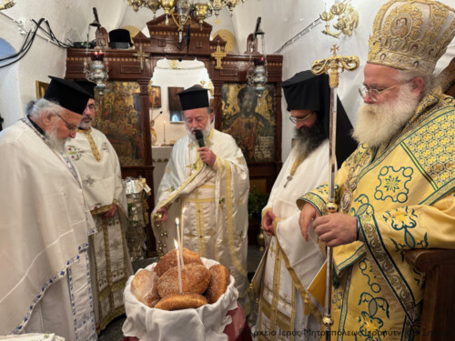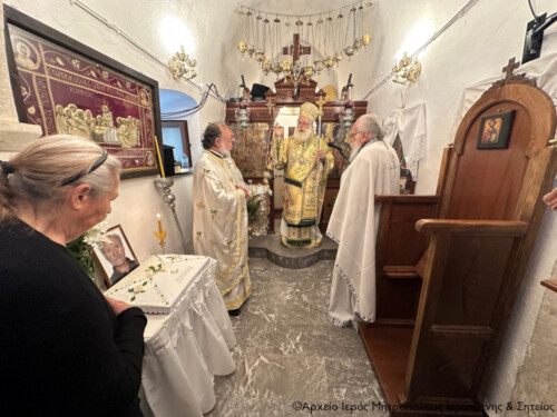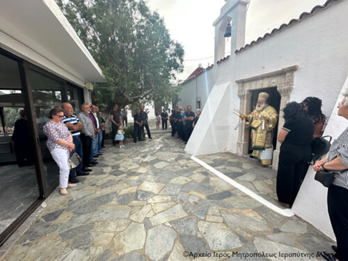 Πριν την Απόλυση τέλεσε το τεσσαρακονθήμερο ιερό μνημόσυνο του μακαριστού Ιωάννου Πρωτογεράκη, επί μακρά σειρά ετών Εκκλησιαστικού Συμβούλου και πρωτεργάτη στα έργα συντήρησης και ανάπλασης της Παναγίας της Γαλακτοκτισμένης και των Ενοριών Σκορδύλλου και Παρασπορίου.