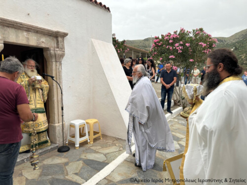Στην Αρχιερατική θεία Λειτουργία έλαβαν μέρος ο Πανοσιολ Αρχιμ. Αμβρόσιος Σκαρβέλης, Πρωτοσύγκελλος της Ι. Μητροπόλεως και Ηγούμενος της Μονής Τοπλού, οι συνταξ. Εφημέριοι πρωτ. Γεώργιος Τσικαλάκης και πρωτ. Μιχαήλ Μπετείνης, ο Εφημέριος των Ενοριών Παρασπορίου, Σκορδύλλου, Κρυών και Δάφνης π. Εμμανουήλ Φραγκιαδάκης και ο Διάκονος Θεμιστοκλής Μπεϊνάς.