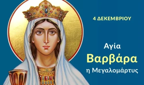 Από τον Μητροπολιτικό Ιερό Ναό του Αγίου Γεωργίου Ναυπλίου ανακοινώνεται ότι την Πέμπτη 4 Δεκεμβρίου 2025, εορτάζεται η μνήμη της Αγίας και πανεφήμου μεγαλομάρτυρος Βαρβάρας, η οποία τιμάται όλως ιδιαιτέρως στο Ναύπλιο και στον ιστορικό Ιερό Ναό του Αγίου Σπυρίδωνος.