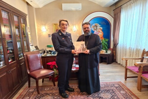 Ὁ Σεβασμιώτατος  τήν συνεχάρη γιά τήν ἀνάληψη τῶν νέων της καθηκόντων καί τῆς ἐπεσήμανε ὅτι ἡ Ἐκκλησία δέεται πάντοτε γιά τά φιλόχριστα Σώματα Ἀσφαλείας ἐπ’ ἀγαθῷ τῶν πολιτῶν.