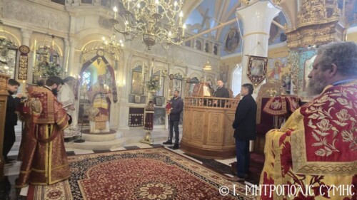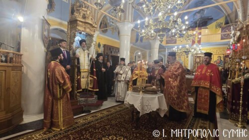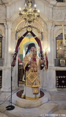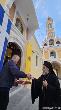 Τέλος, ἔλαβε χῶρα ἡ Ἱ. Λιτανεία καί μετά τήν ἀπόλυση, μέ τήν μέριμνα τοῦ φιλόξενου καί δραστηρίου Ἐκκλησιαστικοῦ Συμβουλίου τῆς Ἐνορίας καί τῶν κυριῶν αὐτῆς, προσεφέρθησαν στούς ἐκκλησιαζομένους ὁ καφές καί τά πλούσια πατροπαράδοτα κεράσματα.