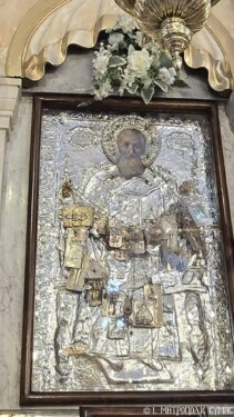 Τό ἑσπέρας τοῦ Σαββάτου, ἐτελέσθη ὁ Μέγας Πανηγυρικός Ἑσπερινός, χοροστατοῦντος τοῦ Σεβ. Μητροπολίτου  κ. Χρυσοστόμου, πλαισιουμένου ὑπό τοῦ Θεοφιλ. Βοηθοῦ Αὐτοῦ Ἐπισκόπου Ροδοστόλου κ. Ἀντωνίου καί ἐκ τοῦ Ἐφημεριακοῦ Κλήρου τῆς Σύμης. Προσῆλθαν πολλοί πιστοί γιά νά ἀνάψουν τό κερί τους, νά προσκυνήσουν  τό χαριτόβρυτο ἀπότμημα τοῦ Ἱεροῦ Λειψάνου τοῦ Ἁγίου καί νά προσευχηθοῦν στόν ἄτλαντα αὐτόν τῆς ὑγιοῦς πίστεως, πού κατατρόπωσε τίς αἱρετικές δοξασίες τοῦ Ἀρείου, στερεώνοντας εἰς τούς αἰῶνας τήν Ὀρθοδοξία, μεταξύ τῶν ὁποίων καί ὁ Δήμαρχος Σύμης κ. Ἐλευθέριος Παπακαλοδούκας, ὁ Βουλευτής Δωδεκανήσου κ. Μάνος Κόνσολας, ὁ Πρόεδρος τοῦ Δημοτικοῦ Συμβουλίου Σύμης κ. Φίλιππος Δερμιτζάκης, ὁ Ἀντιδήμαρχος κ. Νικήτας Γρύλλης, ὁ μέχρι τοῦδε Διοικητής Δ.Α.Ν. τῆς Σύμης κ. Χαράλαμπος Κατηφόρης, ἄρτι προαχθείς εἰς Ταξίαρχον καί ὁ Λιμενάρχης Σύμης κ. Σταῦρος Μακρῆς, ἐνῶ συμμετεῖχαν καί Μέλη τῆς ΕΔΟΚ Σύμης. Πρό τῆς Ἀπολύσεως καί ἐκ μέρους τῆς Ἐνορίας, ὁ Ἐφημέριος Οἰκονόμος π. Ἐλευθέριος Ὀθίτης, δραττόμενος τῆς εὐκαιρίας τῆς Πανηγύρεως, προσέφερε εἰς τόν Θεοφιλέστατον Ἐπίσκοπον Ροδοστόλου κ. Ἀντώνιον καλλιτεχινικότατον Ἀρχιερατικόν Ἐγκόλπιον, διά τήν πρόσφατον εἰς Ἐπίσκοπον Χειροτονίαν του.  Ἐν συνεχείᾳ στήν παρακείμενη ἐνοριακή αἴθουσα, προσεφέρθη ἑόρτια Τράπεζα.