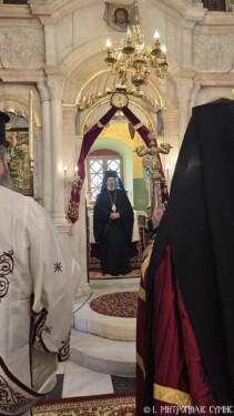 Τό ἱ. ἀναλόγιο διακόνησαν γλυκυφθόγγως ὁ Πρωτοψάλτης κ. Λάζαρος Κουμεντάκης καί ὁ Ἱεροψάλτης κ. Ἀγαπητός Μιχελλής, ἐνῶ πέραν τῶν πολυπληθῶν πιστῶν, ἐκκλησιάσθησαν καί σήμερα  ὁ Δήμαρχος Συμαίων κ. Ἐλευθέριος Παπακαλοδούκας, ὁ Βουλευτής Δωδεκανήσου κ. Μάνος Κόνσολας, ὁ Πρόεδρος τοῦ Δημοτικοῦ Συμβουλίου Σύμης κ. Φίλιππος Δερμιτζάκης, ὁ Ἀντιδήμαρχος κ. Νικήτας Γρύλλης, ὁ μέχρι τοῦδε Διοικητής Δ.Α.Ν. τῆς Σύμης κ. Χαράλαμπος Κατηφόρης, ἄρτι προαχθείς εἰς Ταξίαρχον, ὡς καί ἐκπρόσωποι τῶν λοιπῶν τοπικῶν Ἀρχῶν, Φορέων καί Συλλόγων.