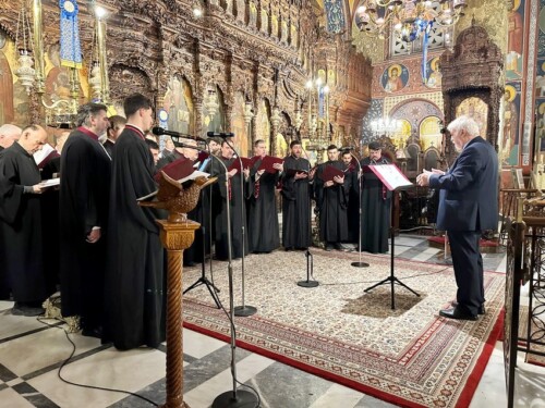 Μέ μεγάλη ἐπιτυχία καί σημαντική προσέλευση μουσικόφιλου κοινοῦ πραγματοποιήθηκε τό Σάββατο τό ἀπόγευμα μετά τήν ἀκολουθία τοῦ Ἐσπερινοῦ, 29 Μαρτίου, ἡ Συναυλία τῆς «Βυζαντινῆς Χορωδίας Ἀθηνῶν» ὑπό τή Διεύθυνση τοῦ Πρωτοψάλτου κ. Γεωργίου Χατζηχρόνογλου, Ἄρχοντος Ὑμνωδοῦ τῆς Μεγάλης τοῦ Χριστοῦ Ἐκκλησίας, στόν Ἱερό Μητροπολιτικό Ναό Ἁγίας Φωτεινῆς Νέας Σμύρνης.