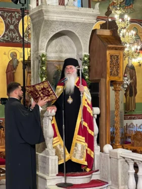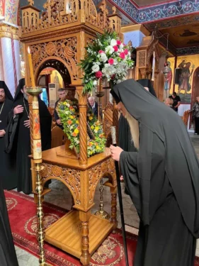 Στον Πανηγυρικό Εσπερινό χοροστάτησε ο Σεβασμιώτατος Μητροπολίτης Μαντινείας και Κυνουρίας κ. Επιφάνιος, συγχοροστατούντων των Σεβασμιωτάτων Μητροπολιτών Μεσογαίας και Λαυρεωτικής κ. Νικολάου και του οικείου Ποιμενάρχου Νέας Ιωνίας, Φιλαδελφείας, Ηρακλείου και Χαλκηδόνος κ. Γαβριήλ, με τη συμμετοχή πλειάδας κληρικών.
