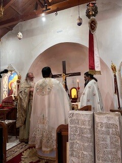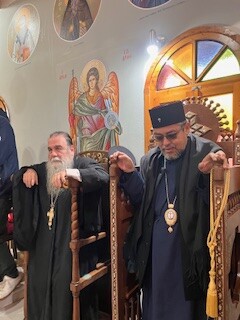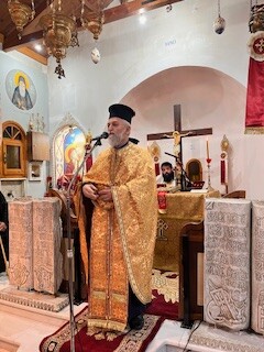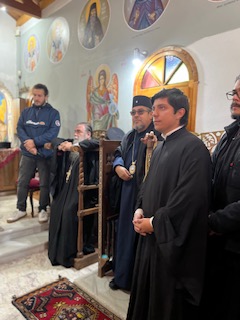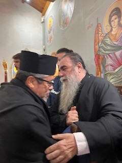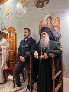 συμπροσευχόμενοι παρέστησαν ο Πανοσιολογιώτατος Αρχιμανδρίτης π. Δαμασκηνός Μακράς, ο οποίος την ημέρα αυτή πανηγυρίζει τα σεπτά ονομαστήρια του ενώ κατά Θεία Οικονομία προσήλθε   ο Θεοφιλέστατος Επίσκοπος Άσσου κ. Τιμόθεος εκ της Ι. Μ. Μεξικού, ο οποίος απηύθυνε εγκάρδιες και πατρικές ευχές προς τον π. Δαμασκηνό ακριβώς μετά την ανάγνωση του Ιερού Ευαγγελίου της Θείας Ευχαριστίας