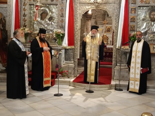 Μετά την απόλυση της Ακολουθίας, ο Σεβασμιώτατος, ευχήθηκε στα παιδιά κάθε ευλογία της Παναγίας και καλή επιτυχία στις επικείμενες εξετάσεις.