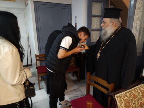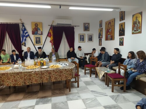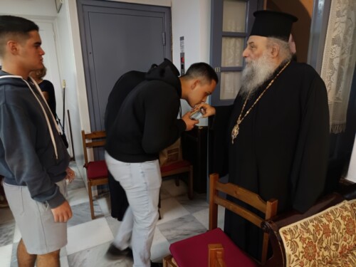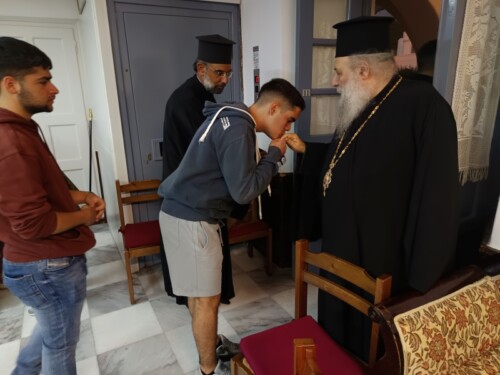 Μετά το πέρας της Ακολουθίας, τα παιδιά φιλοξενήθηκαν στην αίθουσα του Ιερού Προσκυνήματος όπου εκεί είχαν την ευκαιρία να ομιλήσουν και να ανταλλάξουν απόψεις με τον Σεβασμιώτατο Μητροπολίτη , καθώς και να κεραστούν γλυκίσματα και αναψυκτικά.