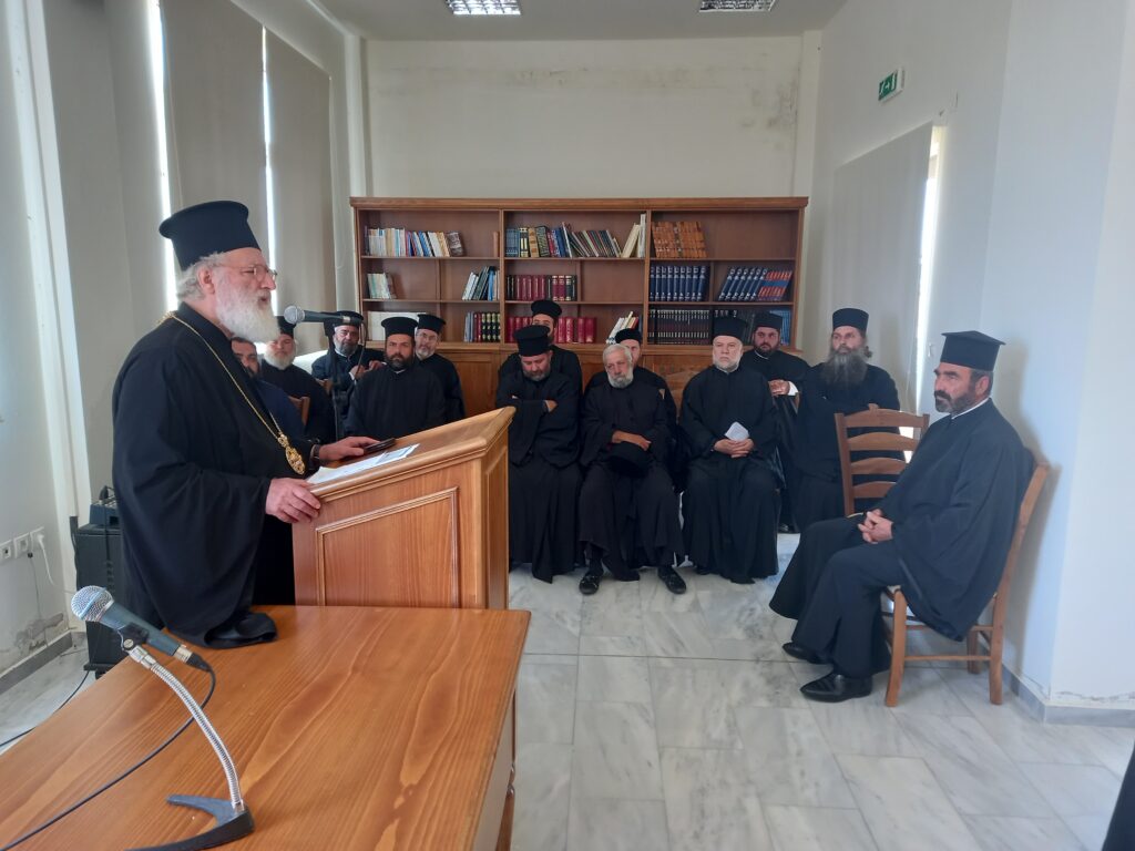Την Τρίτη 6 Ιουνίου 2023, στην αίθουσα συνεδριάσεων του Πολιτιστικού Πολύκεντρου της Ι. Μητροπόλεως, πραγματοποιήθηκε Ιερατική Σύναξη κατά την οποία παρέστη το σύνολο των κληρικών. Μετά την καθιερωμένη προσευχή, ομίλησε ο Σεβασμιώτατος Μητροπολίτης Αρκαλοχωρίου, Καστελλίου και Βιάννου κ. Ανδρεάς , για την ανάγκη να εξομολογούμεθα οι κληρικοί και για αλλά πνευματικά και διοικητικά θέματα. Στην συνέχεια, ακολούθησε συζήτηση με τους Ιερείς, σε ερωτήματα που έθεσαν για τα παραπάνω θέματα.