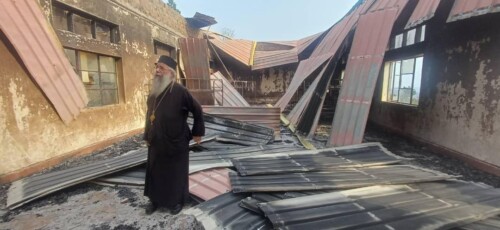 Ο Επίσκοπος έδωσε εντολή άμεσα ο εργολάβος να εγκατασταθεί να καθαρίσει το καμένο κτίριο και να αρχίσει την στερέωση των τοίχων.