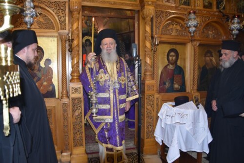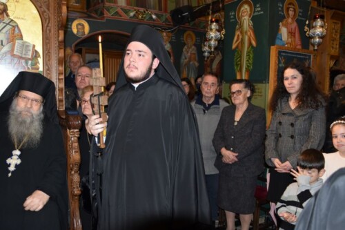 Κατά τη διάρκεια της ακολουθίας, ο Σεβασμιώτατος τέλεσε τη μοναχική κουρά του από ικανού καιρού δοκίμου της Ιεράς Μονής Κωνσταντίνου Κούκουρα, στον οποίο έδωσε το όνομα Κύριλλος.