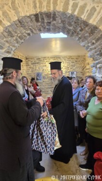 Χθές 21η Δεκεμβρίου 2025, Κυριακή πρό τῆς Χριστοῦ Γεννήσεως, ὁ Σεβ. Μητροπολίτης Σύμης κ. Χρυσόστομος, λόγῳ δυσμενῶν καιρικῶν συνθηκῶν, δέν κατέστη δυνατόν νά ἱερουργήσει κατά τό πρόγραμμά του στόν Ἐνοριακό Ἱ. Ναό Ἁγίας Τριάδος Σύμης, πλήν ὅμως μετά τήν τελεσθεῖσα Θ. Λειτουργία ἀπό τόν ἐφημέριο τῆς Ἐνορίας π. Γεώργιο Χατζηχρυσάφη, τόν π. Γεώργιο Κακακιό καί τόν Ἱεροδιάκονο π. Παῦλο Τερεζάκη, στήν ὁποία παρέστη συμπροσευχόμενος, ὁ Σεβασμιώτατος παρηκολούθησε τήν Χριστουγεννιάτικη ἐκδήλωση τῶν παιδιῶν τοῦ Κατηχητικοῦ Σχολείου, τά ὁποῖα, τηρώντας τά ἁγνά ἔθιμα τοῦ λαοῦ μας, μετέφεραν τό μήνυμα τῆς Ένσαρκώσεως τοῦ Θεοῦ Λόγου. Ὁ Μητροπολίτης μας εὐχήθη σέ ὅλους τά δέοντα καί προσέφερε στά παιδιά ἑορταστικά δῶρα, ἐνῶ ἡ Ἐνορία ὀργάνωσε Χριστουγεννιάτικη ἑορταγορά καί δεξιώθηκε τούς ἐκκλησιαζομένους μέ πλούσια ἑόρτια κεράσματα.