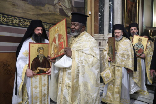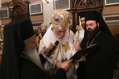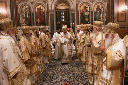 Στο πλαίσιο των λατρευτικών εκδηλώσεων για την ως άνω Εορτή τελέσθηκε στον Καθεδρικό Ιερό Ναό Αθηνών Συνοδική Θεία Λειτουργία, προεξάρχοντος του Μακαριωτάτου Αρχιεπισκόπου Αθηνών και πάσης Ελλάδος κ. Ιερωνύμου και συλλειτουργούντων των Σεβασμιωτάτων Μητροπολιτών Νέας Σμύρνης κ. Συμεών, Κερκύρας, Παξών και Διαποντίων Νήσων κ. Νεκταρίου, Μεσογαίας και Λαυρεωτικής κ. Νικολάου, Πατρών κ. Χρυσοστόμου, Καστορίας κ. Καλλινίκου, Πολυανής και Κιλκισίου κ. Βαρθολομαίου, Δράμας κ. Δωροθέου, Παραμυθίας, Φιλιατών και Γηρομερίου κ. Σεραπίωνος, Φλωρίνης, Πρεσπών και Εορδαίας κ. Ειρηναίου και του Θεοφιλεστάτου Επισκόπου Σκιάθου κ. Ιωάννου, Αρχιγραμματέως της Ιεράς Συνόδου της Εκκλησίας της Ελλάδος.