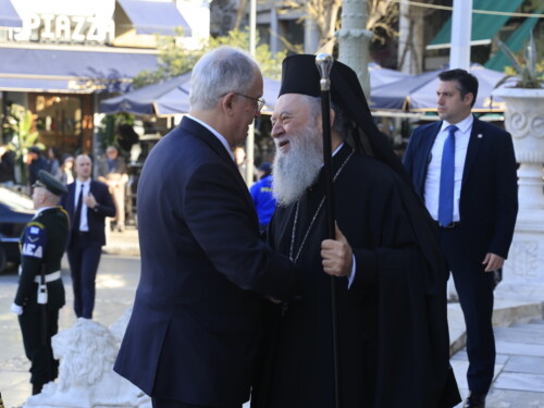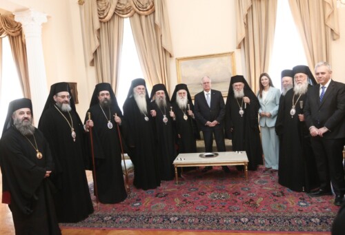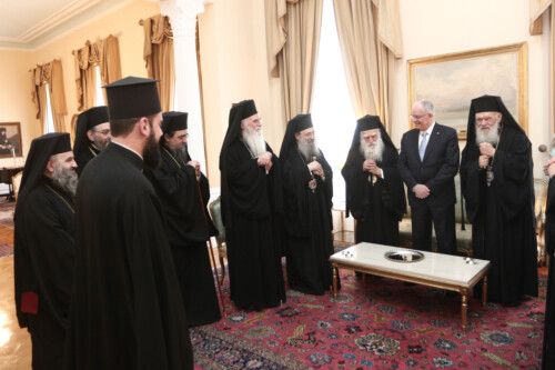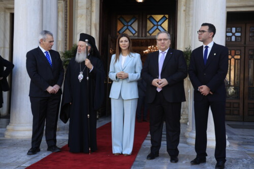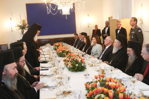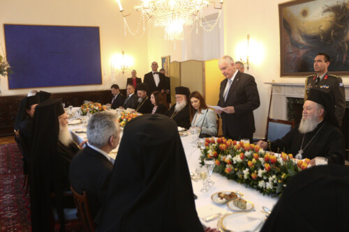Μετά το πέρας της Θείας Λειτουργίας ο Πρόεδρος της Ελληνικής Δημοκρατίας κ. Κωνσταντίνος Τασούλας παρέθεσε στο Προεδρικό Μέγαρο το καθιερωμένο γεύμα για την εορτή της Κυριακής της Ορθοδοξίας προς τιμήν του Μακαριωτάτου Αρχιεπισκόπου Αθηνών και πάσης Ελλάδος κ. Ιερωνύμου και των Σεβασμιωτάτων Μελών της Διαρκούς Ιεράς Συνόδου της Εκκλησίας της Ελλάδος.