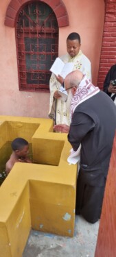 Βαφτίστηκαν δύο μαθητές του Σχολείου Αγίου Μάρκου. Μια ξεχωριστή ευλογία έζησε η ενορία του Αγίου Μάρκου με την προσέλευση στην Ορθοδοξία δύο μαθητών του Σχολείου του Αγίου Μάρκου. Ο ένας εξ αυτών προήλθε από οικογένεια όπου ο πατέρας είναι πάστορας. Έδωσε όμως την συγκατάθεση του, να βαπτιστεί το παιδί λέγοντας ” να πας, εκεί είναι η πραγματική Εκκλησία στην Ορθοδοξία “. Ο Μητροπολίτης Κινσάσας κ Θεοδόσιος τέλεσε το μυστήριο στον Ιερό Ναό του Αγίου Μάρκου και στο τέλος μίλησε πατρικά στους νέους πιστούς της Εκκλησίας. Στο αποτέλεσμα αυτό φτάσαμε με την άοκνη βοήθεια των αδελφών Φωτεινής και Βασιλικής που εργάζονται ιεραποστολικά στην Κινσάσα.