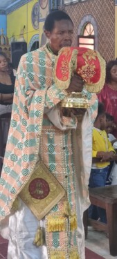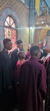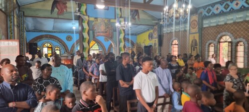Ο Μητροπολίτης Κινσάσας κ Θεοδόσιος τέλεσε χθες Κυριακή την Θεία Λειτουργία στον Ιερό Ναό του Αγίου Μάρκου Κινσάσας. Συλειτούργησαν μαζί του οι πρωτοπρεσβύτεροι Ιάκωβος, Φώτιος και Ραφαήλ, ο πρεσβύτερος Λέων, ο Αρχιδιάκονος Παΐσιος και οι διακονοι Ιερόθεος και Ιωάννης. Ο Μητροπολίτης στο κήρυγμα του αναφέρθηκε αναφέρθηκε στο αποστολικό ανάγνωσμα και σχολίασε σημεία αυτού. Στο αναλόγιο του Ναού έψαλλε ο μουσικολογιώτατος μοναχός Γέροντας Κουκουζέλης από τον Άγιον Όρος.