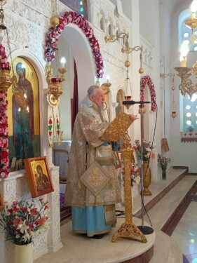 Με τον Σεβασμιώτατο Μητροπολίτη κ. Σεραφείμ συλλειτούργησαν οι Πανοσ Αρχιμ π. Νικόδημος Πόγκας Πρωτοσύγκελλος της Ιεράς Μητροπόλεως ο π. Πρόδρομος Γκεγκές και ο Πρεσβύτερος π. Θεόδωρος Τοντορέσκου εφημέριος Βιτάλου – Μαλετιάνων.