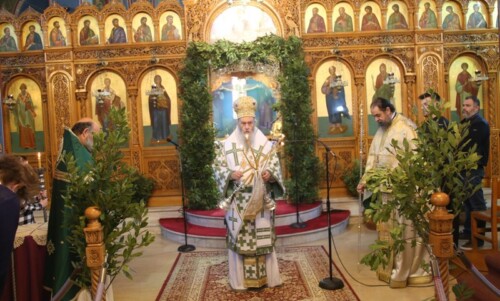 Τήν Κυριακή τῶν Βαΐων, 13 Ἀπριλίου 2025, ὁ Σεβ. Μητροπολίτης Ναυπάκτου καί Ἁγίου Βλασίου Ἱερόθεος, προεξῆρχε τοῦπανηγυρικοῦ Ὄρθρου καί τέλεσε τήν θεία Λειτουργία στόν Ἱερὸ Ναὸ Ἁγίου Νικολάου Ἀντιρρίου. Μέ τόν Σεβασμιώτατο συλλειτούργησαν οἱ Ἱερεῖς: ἀρχιμ. π. Πολύκαρπος Θεοφάνης, ἱεροκήρυξ, ἀρχιμ. π. Πρόδρομος Ἀσημακόπουλος, ἐφημέριος τοῦ Ναοῦ καί ὁ διάκονος π. Παΐσιος Παρασκευᾶς. Πρό τοῦ «Πᾶσα πνοή» διαβάστηκε ἡ εὐχή «Εἰς τό εὐλογήσαι τά βαΐα». Στό κήρυγμά του ὁ Σεβασμιώτατος εἶπε ὅτι τό Εὐαγγελικό ἀνάγνωσμα εἶχε δύο θέματα, τό πρῶτον εἶναι τό δεῖπνο πού ἔγινε στήν Βηθανία μετά τήν ἀνάσταση τοῦ Λαζάρου καί τό δεύτερο εἶναι ἡ εἴσοδος τοῦ Χριστοῦ στά Ἱεροσόλυμα.