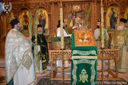«Ας είναι ευλογημένο το όνομα του Αγίου Θεού που μας αξιώνει και φέτος στο τέλος της Αγίας και Μεγάλης Σαρακοστής να κρατήσουμε τα βάγια των φοινίκων. «Ωσαννά ευλογημένος ο ερχόμενος» θα ακουστεί. Ο Χριστός έρχεται επί πώλου όνου να μπει στα Ιεροσόλυμα. Παιδιά θα τον περιστοιχίσουν και όλοι θα υμνούν τον Ερχόμενο. Η «πόλις εσείσθη», θα πει ο Ευαγγελιστής. Ποιο είναι το μήνυμα για το σύγχρονο κόσμο που αυτοδοξάζεται, που καλπάζει συνεχώς με την εξέλιξη, την τεχνητή νοημοσύνη; Οι εορτές της Εκκλησίας ιεροποιούν το χρόνο. Σε κάθε γιορτή ένας παιάνας σαλπίζει σε χρόνο ενεστώτα. Σήμερον γεννάται, σήμερον κρεμάται… Η Εκκλησία ενώνει το παρελθόν με το παρόν και το μέλλον. Αδιάκοπα μνημονεύει και λειτουργεί. Ο Χριστός ανασταίνει το Λάζαρο, αλλά σε λίγο θα κατέβει ο Ίδιος στον Άδη. Σε λίγο τα φώτα θα σβήσουν. Ο Χριστός θα μείνει μόνος. Όλοι θα τον εγκαταλείψουν. Θα υποστεί μαρτύριο, θα φορέσει το ακάνθινο στεφάνι και θα ενθρονιστεί στο Σταυρό που είναι ο θρόνος του. Θα καρφώσει την αγκαλιά του για να μην μπορεί να κλείσει. Για να τους αγκαλιάζει όλους. Ο Άγιος Πορφύριος είχε πάνω από 10 σπάνιες ασθένειες. Όσοι όμως τον συναντούσαν, συναντούσαν το φως. Όταν ο Άγιος Παΐσιος χαμογελούσε, χαμογελούσε η αθωότητα. Η σημερινή μέρα, η Κυριακή των Βαΐων είναι μπροστά στην πύλη της Αγίας και Μεγάλης Εβδομάδας. Η Βασιλεία του Θεού είναι παρούσα στον κόσμο με την Προσευχή των Αγίων, με τη βαθιά πίστη, με την εν Χριστώ ενότητα. Η μεγάλη εβδομάδα δεν είναι μεγαλύτερη, αλλά μέσα σε αυτήν χωρά η Βασιλεία του Θεού. Ας εισοδεύσουμε τα βήματα μας σε αυτήν».