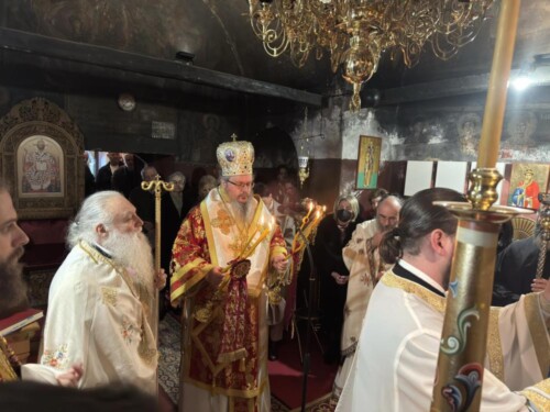 Τον κ. Ιερώνυμο πλαισίωσαν ο Άγιος Καθηγούμενος της Μονής και Άγιος Πρωτοσύγκελλος της Ιεράς Μητροπόλεως, Αρχιμ. του Οικουμενικού Θρόνου π. Εφραίμ Τριανταφυλλόπουλος και οι πατέρες της Αδελφότητος.