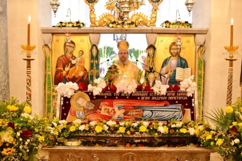 Την κυριώνυμο ημέρα της Εορτής, Τέταρτη 15 Οκτωβρίου 2025, των Ακολουθιών του Όρθρου και της πανηγυρικής Θείας Λειτουργίας προέστη ο Σεβασμιώτατος Μητροπολίτης Ιερισσού, Αγίου Όρους και Αρδαμερίου κ. Θεόκλητος, πλαισιούμενος από τους Παν. Αρχιμ. π. Κυριακό Χολέβα, π. Γεννάδιο Ντελή, π. Ευθύμιο Μαρμαλίδη, π. Νικόδημο Κωτινούδη και τον εκ Μυκόνου ορμώμενο Αιδ. Πρωτ. π. Γεώργιο Κουσαθανά.