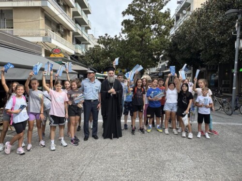 Έπειτα, ο Σεβασμιώτατος περπάτησε στον κεντρικό πεζόδρομο της πόλης, συνοδευόμενος από τους δύο κληρικούς εκ της νήσου Σαντορίνης, π. Ιγνάτιο και π. Λεωνίδα. Στη διαδρομή επισκέφθηκε το περίπτερο της Δημοτικής Αστυνομίας και της Τροχαίας, όπου τον υποδέχθηκαν θερμά οι υπεύθυνοι.