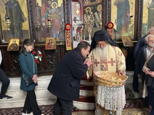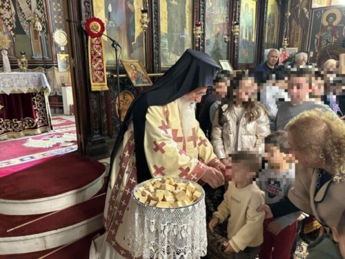 Μετά τη Θεία Λειτουργία άπαντες μετέβησαν στο παρακείμενο Πνευματικό Κέντρο της Μητροπόλεως (Μετόχι Ιεράς Μονής Ιερουσαλήμ), όπου προσφέρθηκε κέρασμα από την ενορία σε όλους, ενώ ο Σεβασμιώτατος πρόσφερε τετράδια και στυλό στους μαθητές. Ο Σεβασμιώτατος συνομίλησε με τα παιδιά, που είναι το μέλλον του τόπου μας, όπως και με τους εκπαιδευτικούς των σχολείων, που με το αθόρυβο έργο τους διαπαιδαγωγούν τη μαθητιώσα νεολαία.