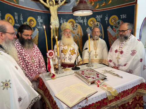 Πριν την Απόλυση ο Σεβασμιώτατος Μητροπολίτης Ιεραπύτνης και Σητείας κ. Κύριλλος, πλαισιούμενος από τους συλλειτουργούντες κληρικούς, τέλεσε Τρισάγιο υπέρ αναπαύσεως των Προκατόχων του μακαριστών Αρχιερέων Φιλοθέου (Μαζοκοπάκη), του και κτήτορος, Φιλοθέου (Βουζουνεράκη) κα Ευγενίου (Πολίτη), των οποίων οι τάφοι βρίσκονται στην κρύπτη κάτω από το Ιερό Βήμα του πανηγυρίζοντος Επισκοπικού παρεκκλησίου.