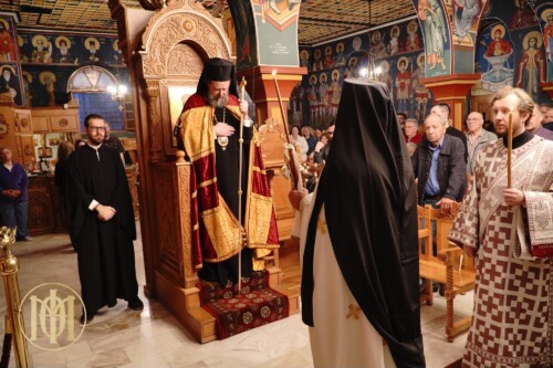 Με ιδιαίτερη λαμπρότητα, τελέσθηκε πανηγυρική αγρυπνία επί τη μνήμη του αγίου Μεγαλομάρτυρος Γεωργίου του Τροπαιοφόρου, την Τετάρτη 23 Απριλίου, ξημερώνοντας 24 Απριλίου (εκ μεταθέσεως), στο ομώνυμο ιερό Μετοχιακό Παρεκκλήσιο της Ιεράς Μονής Γρηγορίου αγίου Όρους. Ο Παναγιώτατος Μητροπολίτης Θεσσαλονίκης κ. Φιλόθεος, προέστη των Ιερών Ακολουθιών και ιερούργησε κατά την Αρχιερατική Θεία Λειτουργία, ενώ κήρυξε τον θείο λόγο προ της απολύσεως.