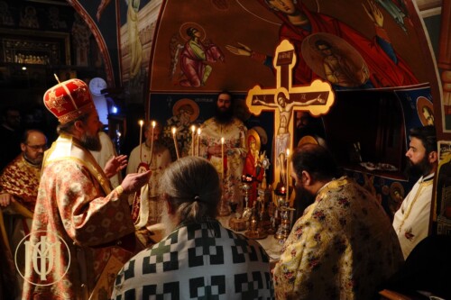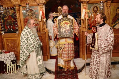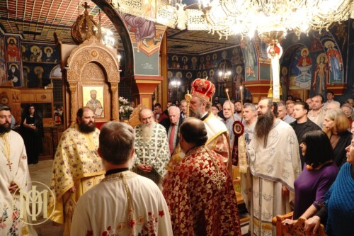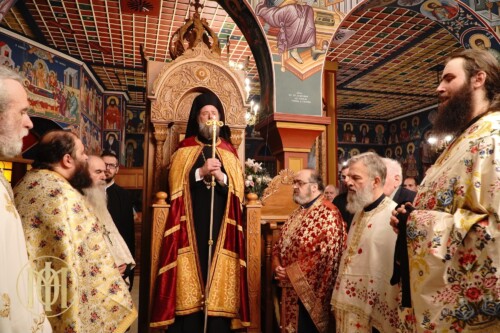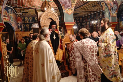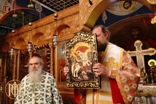Με ιδιαίτερη λαμπρότητα, τελέσθηκε πανηγυρική αγρυπνία επί τη μνήμη του αγίου Μεγαλομάρτυρος Γεωργίου του Τροπαιοφόρου, την Τετάρτη 23 Απριλίου, ξημερώνοντας 24 Απριλίου (εκ μεταθέσεως), στο ομώνυμο ιερό Μετοχιακό Παρεκκλήσιο της Ιεράς Μονής Γρηγορίου αγίου Όρους. Ο Παναγιώτατος Μητροπολίτης Θεσσαλονίκης κ. Φιλόθεος, προέστη των Ιερών Ακολουθιών και ιερούργησε κατά την Αρχιερατική Θεία Λειτουργία, ενώ κήρυξε τον θείο λόγο προ της απολύσεως.