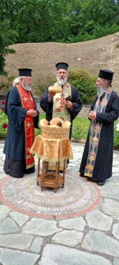 Αμέσως μετά, η εκδρομή συνεχίστηκε με επίσκεψη στην Ιερά Μονή Τιμίου Προδρόμου, όπου η Ηγουμένη Θεολογία Ντόβα καλωσόρισε τους επισκέπτες και τους μίλησε για την ιστορία και την πνευματική αξία της Μονής. Ακολούθησε αρτοκλασία, ενώ οι εκδρομείς δέχθηκαν με ευγνωμοσύνη μικρούς άρτους και παραδοσιακά λουκούμια, συνοδευμένα με δροσερό νερό, ως ένδειξη φιλοξενίας.