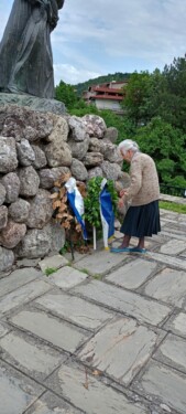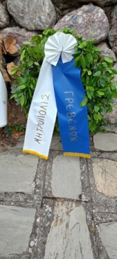 Το στεφάνι κατατέθηκε εκ μέρους της Ιεράς Μητροπόλεως Γρεβενών από την κυρία Ηλέκτρα Αδαμαντίδου, ως ένδειξη σεβασμού και τιμής στις ηρωικές γυναίκες της Νάουσας.