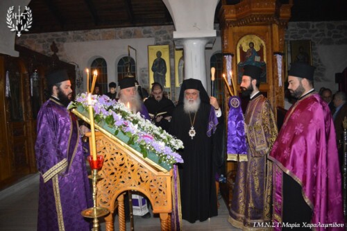 Μετά το πέρας της Ακολουθίας, ο Σεβασμιώτατος ευχαρίστησε τον π.Βασίλειο Βύρλιο και τους συνεργάτες του για τη μέριμνα  και τους κόπους υπέρ της ανακαίνισης του Ιερού Ναού.