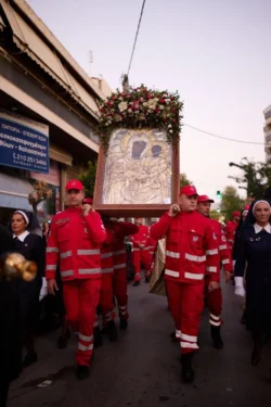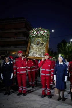 Στη συνέχεια πραγματοποιήθηκε μεγαλοπρεπής λιτάνευση της Ιεράς Εικόνος της Θεομήτορος και του Τιμίου Ξύλου στους δρόμους της Ν.Φιλαδέλφειας, υπό τους ήχους των Φιλαρμονικώντης Ελληνικής Αστυνομίας και του Δήμου Ν. Ιωνίας, παρουσία του Δημάρχου Ν. Φιλαδέλφειας – Ν. Χαλκηδόνας κ. Ιωάννη Τομπούλογλου, Αντιδημάρχων, μελών του Δημοτικού και των Κοινοτικών Συμβουλίων του Δήμου, του Προέδρου του Ελληνικού Ερυθρού Σταυρού κ. Αντωνίου Αυγερινού, του Προέδρου της Διοικούσης Επιτροπής του ΚΕ.ΜΙ.ΠΟ του Δήμου Ν. Ιωνίας κ. Λουκά Χριστοδούλου, εκπροσώπων προσφυγικών σωματείων, φορέων της πόλεως και πλήθους ευσεβούς λαού.