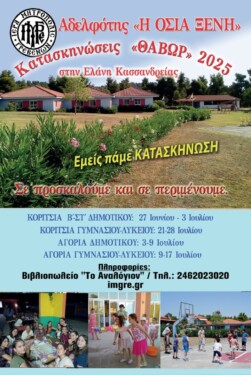 Καθώς η σχολική χρονιά φτάνει στο τέλος της, η κατασκηνωτική ετοιμασία αρχίζει. Έτσι και φέτος η Ι.Μ. Γρεβενών, σε απόλυτη συνεργασία με την Αδελφότητα της Οσίας Ξένης, στις υπέροχες εγκαταστάσεις της πανέμορφης Ελάνης στην Χαλκιδική, οργανώνει κατασκηνωτικές περιόδους για αγόρια και για κορίτσια, για Δημοτικό, Γυμνάσιο, μέχρι και Λυκείου όπως και για αγόρια Δημοτικού μέχρι και Λύκειο αλλά και για Κυρίες. Και αν κάποιος αμφιβάλλει, ορίστε, σύμφωνα με τις έρευνες, 10 λόγοι, για να πάει κανείς στην κατασκήνωση: