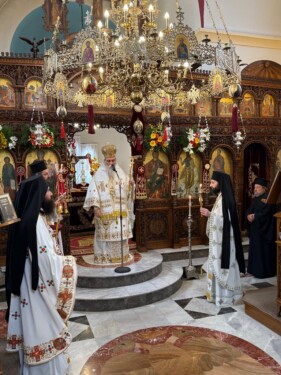 Προσκεκλημένος του Σεβ. Μητροπολίτου Λάμπης, Συβρίτου και Σφακίων κ. Ειρηναίου, ο Σεβασμιώτατος Μητροπολίτης Κισάμου και Σελίνου κ. Αμφιλόχιος μετείχε της πανηγύρεως της Ιεράς Σταυροπηγιακής Μονής Αγίων Ραφαήλ, Νικολάου και Ειρήνης, η οποία ευρίσκεται στο Σπήλι, έδρα της Ιεράς Μητροπόλεως, παραπλεύρως του Επισκοπείου, συνευχομένου του Σεβ. Ποιμενάρχου κ. Ειρηναίου. Ο Μητροπολίτης Κισάμου με λόγους θερμούς, ευχαρίστησε τον «πολιό και πολυσέβαστο Γέροντα Μητροπολίτη Λάμπης, Συβρίτου και Σφακίων κ. Ειρηναίο δια την ευγενή πρόσκληση συνεορτασμού», και αναφέρθηκε στην Ανάσταση του Κυρίου μας Ιησού ως και τους νεοφανείς Αγίους, Ραφαήλ, Νικόλαο και Ειρήνη «κήρυκες και μάρτυρες της Αναστάσεως, οι οποίοι μυστικώ τω τρόπω, βίωσαν στις καρδιές τους το μυστήριο της Αναστάσεως», ως ανέφερε στο κήρυγμα του. Πλήθη προσκυνητών, από την ευρύτερη περιοχή, μετείχαν της ιεράς πανηγύρεως, τόσο στον πανηγυρικό Εσπερινό, στο οποίο συγχοροστάστησαν οι Σεβ. Μητροπολίτες: Αρκαλοχωρίου, Καστελλίου και Βιάννου κ. Ανδρέας και Πέτρας και Χερρονήσου κ. Γεράσιμος, όσο και κατά την κυριώνυμο ημέρα.