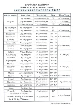 Μητρόπολη Λήμνου : Πρόγραμμα Μυστηρίου Θείας και Ιεράς Εξομολογήσεως Δεκαπενταύγουστου