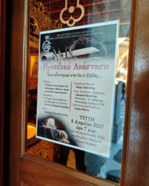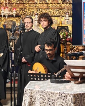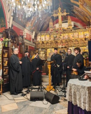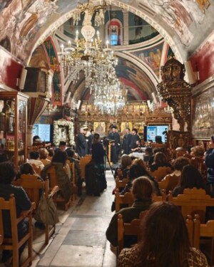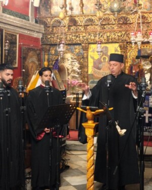 Με την ευχή και ευλογία του Σεβασμιώτατου Μητροπολίτου Σύρου κ. Δωροθέου Β’, πραγματοποιήθηκε την Τρίτη 8 Απριλίου στον κατάμεστο από πιστούς Ιερό Μητροπολιτικό Ναό της Μεγάλης Παναγιάς, Μουσική εκδήλωση με βυζαντινούς ύμνους της Μεγάλης Εβδομάδας υπό τον τίτλο « Προσδοκώ Ανάστασιν … ένα οδοιπορικό στο Θείο πάθος» από τον βυζαντινό χορό του Καθεδρικού Ναού του Αγίου Διονυσίου του Αρεοπαγίτου, πολιούχου Αθηνών, υπό την διεύθυνση του Μουσικολογιώτατου Πρωτομαΐστορα της Μεγάλης του Χριστού Εκκλησίας κ. Γεωργίου Δεμελή, και σε κείμενα του κ. Λάμπρου Παγούνη, Θεολόγου και υποψηφίου Διδάκτορος της Θεολογικής Σχολής του Α. Π. Θ.