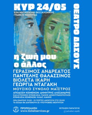 Η Ιερά Μητρόπολη Θεσσαλονίκης και το Γραφείο Νεότητας παρουσιάζουν την Κυριακή 24 Μαΐου στις 9:00 μ.μ., στο Θέατρο Δάσους, την καλλιτεχνική συναυλία με τίτλο «Η ζωή μου, ο άλλος».