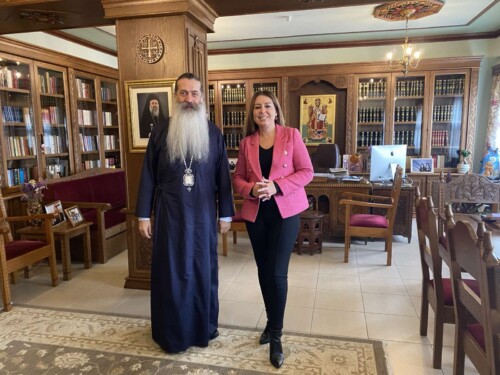 Στο πλαίσιο της έναρξης αυτής της δράσης επισκέφτηκε τον Σεβασμιώτατο στο γραφείο του, για να τον ευχαριστήσει εκ μέρους της ΔΥΠΑ, η κ. Γεροστεργίου Κέλλυ, Προϊσταμένη Επαγγελματικής Εκπαίδευσης, Κατάρτισης και ΒΣΝ ΔΥΠΑ Θεσσαλίας και Στερεάς Ελλάδας.